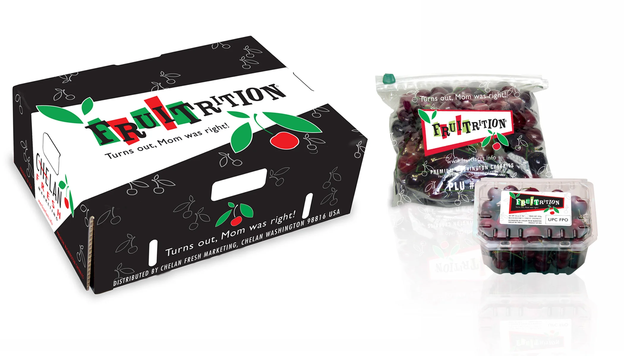 Cherry box, slide lock bag, and clamshell